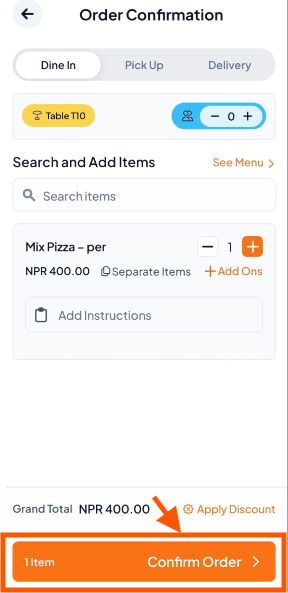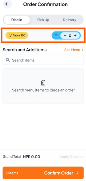 Step 3: Tap "Search Items" or "See Menu" to add items.