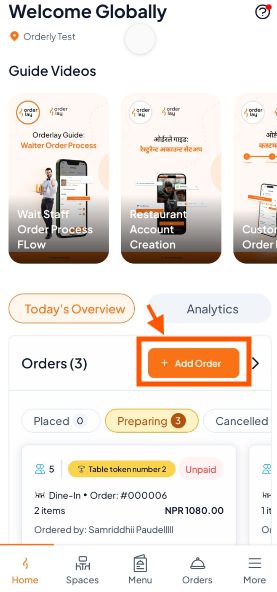 Go to Orders to track status: Preparing → Ready → Served