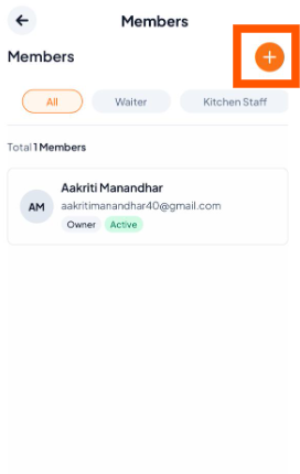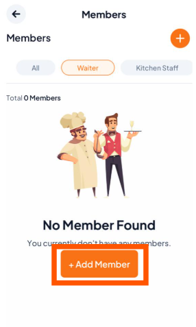 Option 2: Use the Members List. Select any member (e.g., Manager, Kitchen Staff) and Click on “+Add Member”.