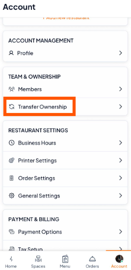 The new owner must already have a personal Orderlay account (created with the same email or phone number you enter during the transfer).