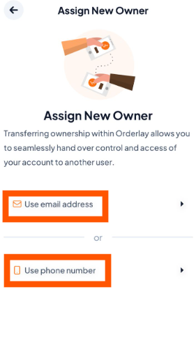 Phone Number: If the new owner's Orderlay account was created using their phone number.