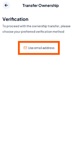 After clicking "Transfer Ownership", you will reach the verification page. Tap "Use email address" or "Use phone number" to verify your identity. For example, here we are given the option of using an email address because the account was created with email.