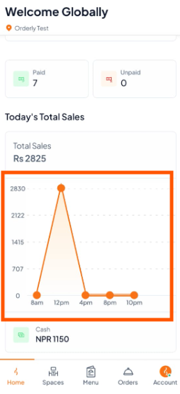 You can also view a sales chart showing performance throughout the day (e.g., 8 AM, 12 PM, etc.), helping you understand peak hours and popular times for orders.