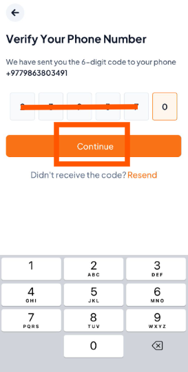 Step 2: Click on "Continue" to verify your Phone Number or Email.
