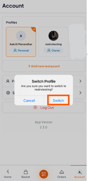Step 3: Switch to Restaurant Account