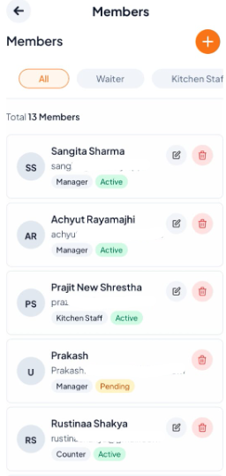 To Delete: Click the Delete button next to the member's name and confirm the action in the pop-up window.