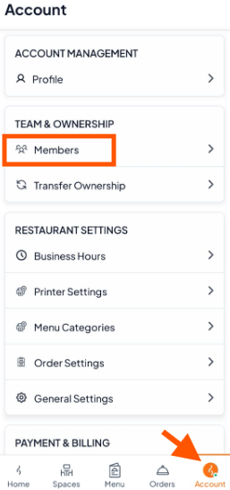 In the Account section, select "Members" to view all team members.