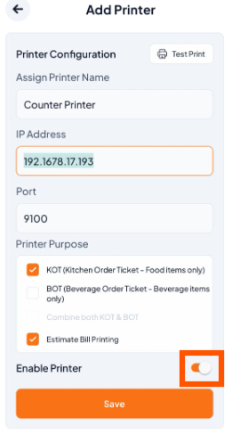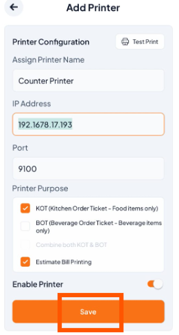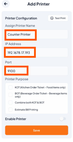 IP Address: Enter your printer’s network address (e.g., 192.168.1.100).
