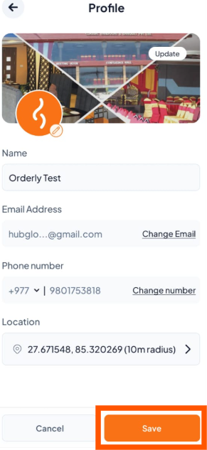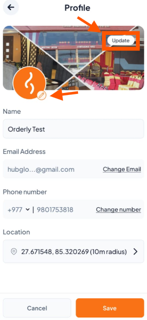 Tap the Edit Profile button and Click the Update button to change your logo and cover picture.