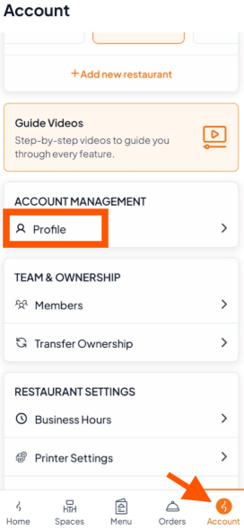 From the Account tab, scroll to ACCOUNT MANAGEMENT and tap "Profile".