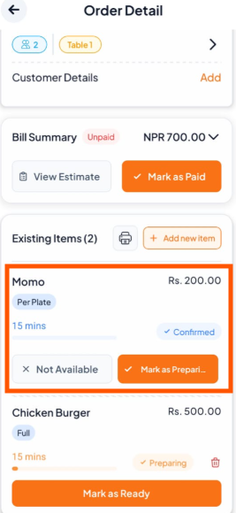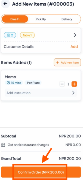 Step 4: Confirm the Orders to send the new items to the kitchen.
