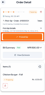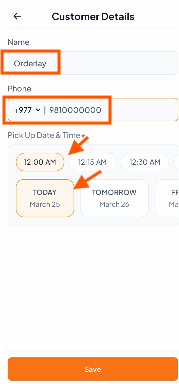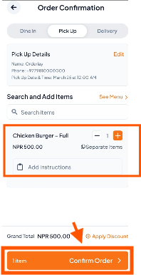 Step 2: Select "Pick Up" and tab "add" to add customer details.