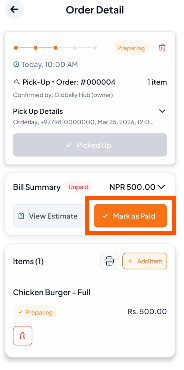 Tap "Add Payment" and select the payment method (cash, card, etc.).